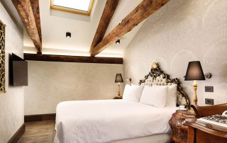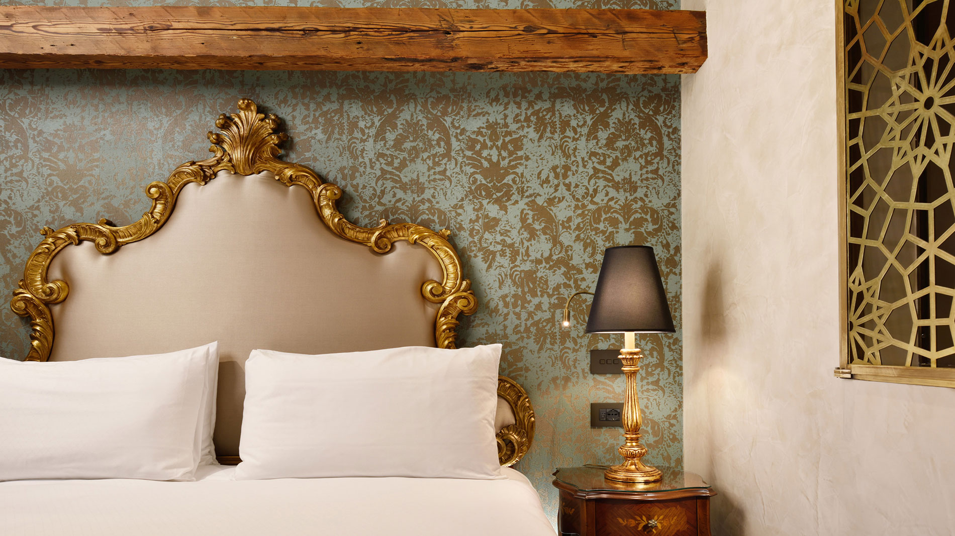 Complementi di lusso, parati in seta arabesque, marmi onice e pregiati pavimenti in rovere dark impreziosiscono gli ambienti raffinati e funzionali, ideali per un soggiorno alla scoperta di una Venezia inedita.