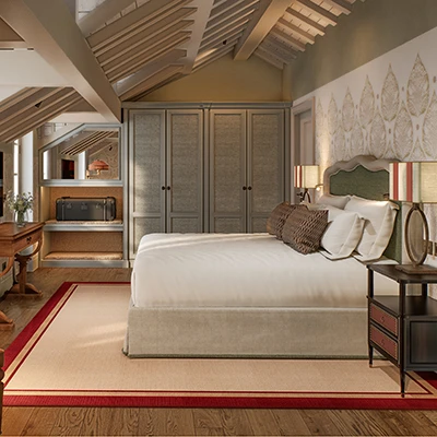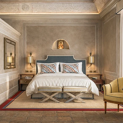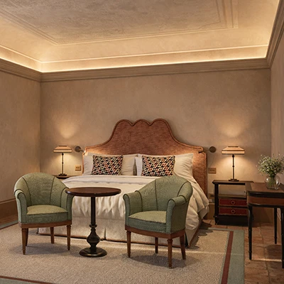 Le tre Historic Junior Suite, situate al piano nobile, rappresentano alcune tra le camere più eleganti e iconiche del relais: ambienti ricchi di fascino custodiscono lo spirito dell’antico monastero.