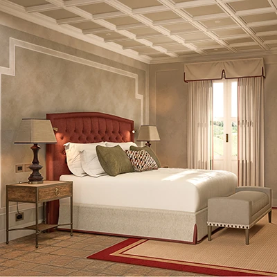 Le Deluxe Suite sono due, ciascuna con caratteristiche uniche in cui si fondono tradizione storica, comfort contemporaneo e una suggestiva vista sul parco privato.
